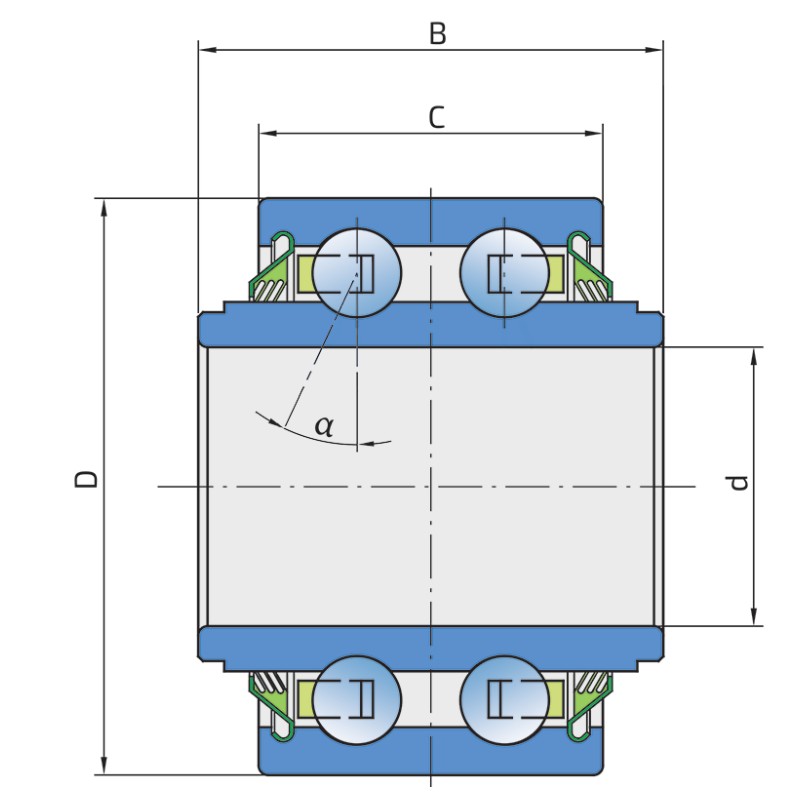 B – Iekšējā gredzena platums: 50 mm