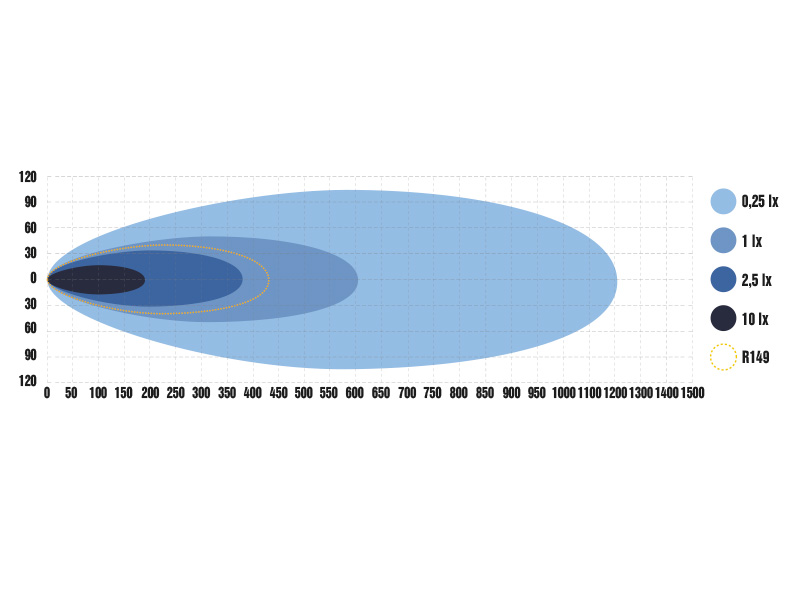 Double Up funkcija: Ieslēdziet maksimālo jaudu, lai sasniegtu 1 lux apgaismojumu līdz pat 604 metru attālumam.