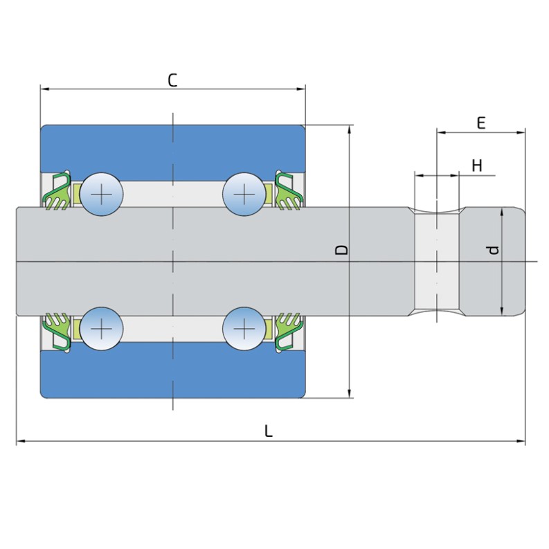 E – Attālums no urbuma ass līdz iekšējā gredzena sānu virsmai: 12,95 mm